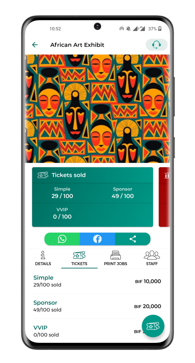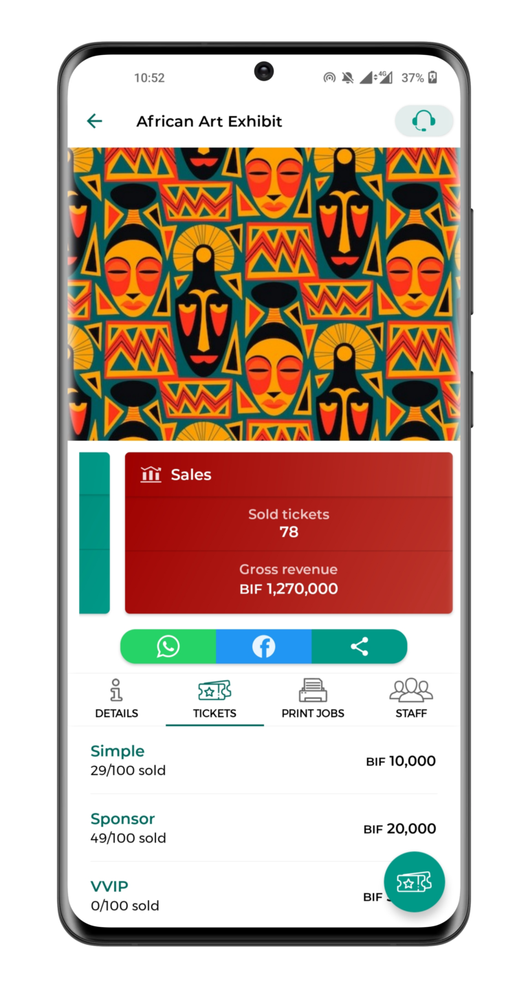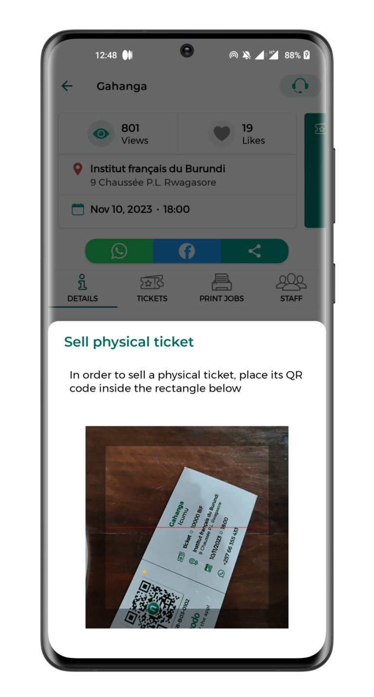 You can manage your staff directly in the app, enabling them to sell and scan tickets for your event with one platform